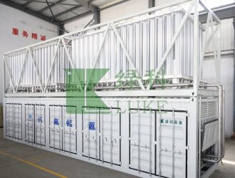 LNG快捷供氣裝置的設(shè)計遵循燃氣規(guī)范要求,充分考慮到運輸方便、安裝簡單、操作方便、安全控制等因素進行了模塊化設(shè)計。裝置由空氣氣化器和調(diào)壓計量撬兩個集裝箱體組成,其生產(chǎn)全部在工廠完成。運到現(xiàn)場后,連接LNG槽車即可通氣。真正做到了現(xiàn)場快速安裝,快捷供氣。